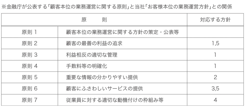 お客さまの最善の利益を追求するための行動、お客さまへの誠実な対応を行うため、社員へ継続的な教育・指導を通じて、本方針の定着に取り組んでまいります。